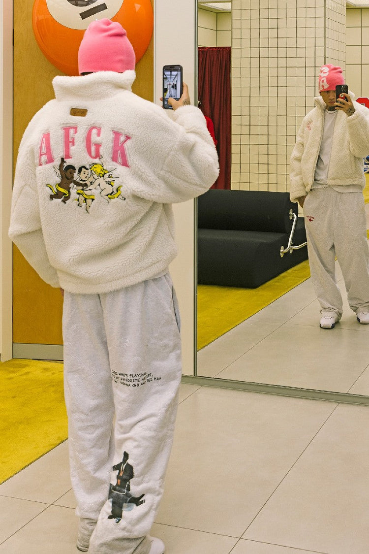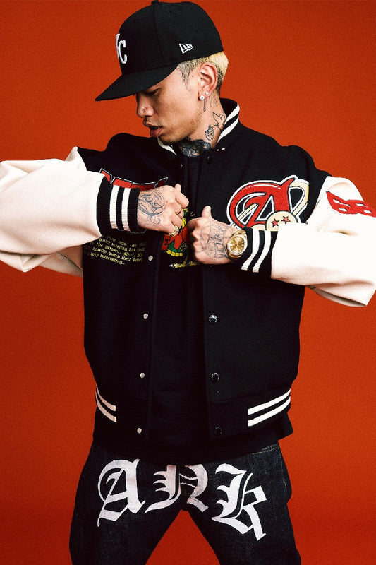 AFGK's collaboration with Higher Brothers and DONCARE combines cutting-edge style and streetwear repute. The iconic varsity jackets and circular logo let you rep this fusion music and fashion brand.