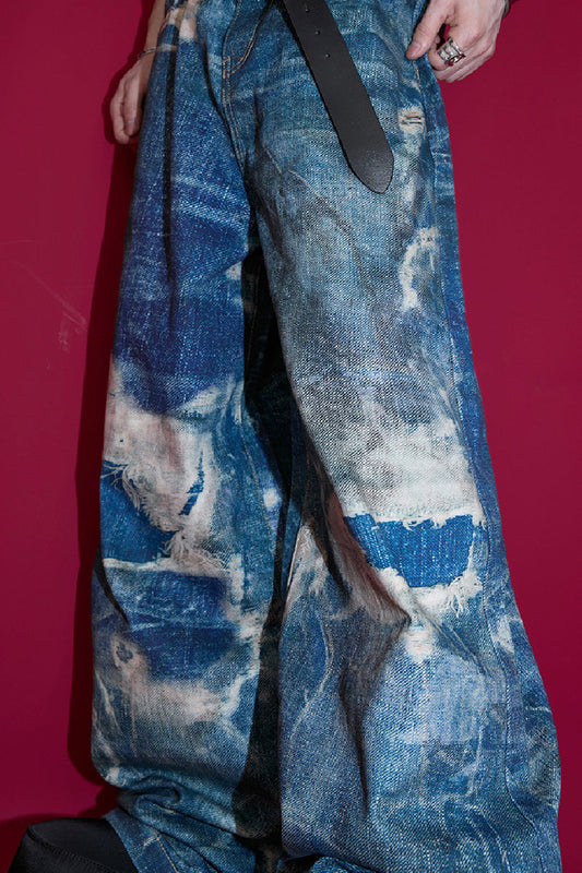 Vintage Distressed Print Jeans