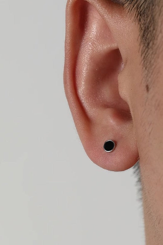 Sterling SIlver Black Round Earrings